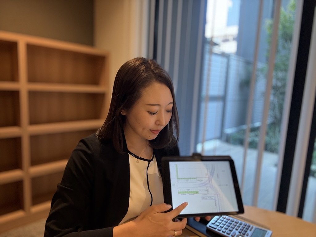 オフィスビル向けなどの用地を探しておられる企業様と、土地オーナー様をマッチングする営業を主に行っています。課長としての役割はマネージャーの補佐役として、6名ほどのメンバーのサポートや新人育成などを担当。具体的には、営業先に新人を同行し、OJTでイチからレクチャーをしています。仕事の流れや営業の仕方などはもちろんのこと、現場を注意深く観察することが大切なので、たとえば、「この草の生え方であれば、どれくらい放置されている土地か?」といった技術的なことも、伝えるようにしています。あとは、マネージャーをサポートする事務作業や、メンバーたちからの相談を受けることも重要なミッションです。