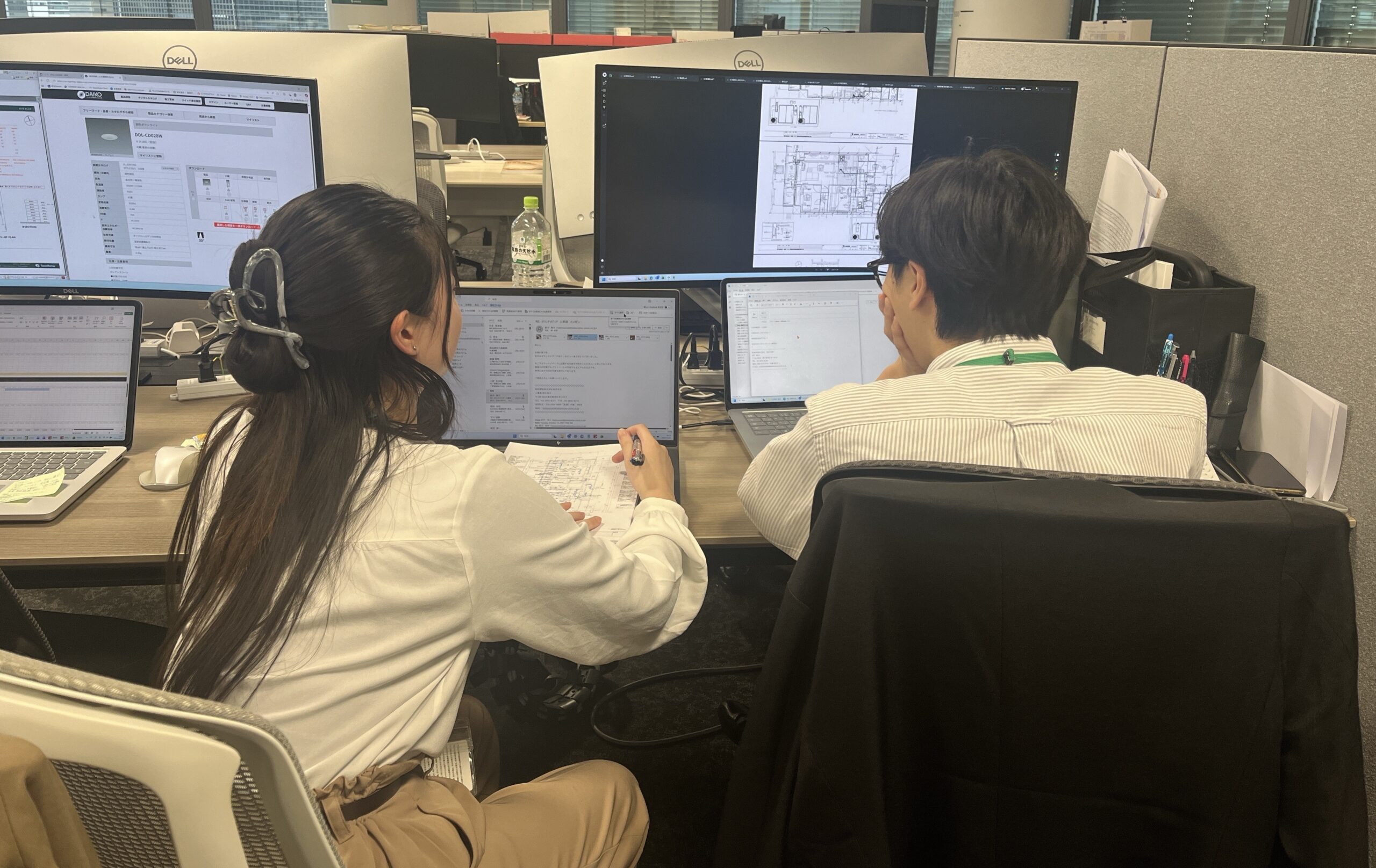 そうした課題に、設備設計として挑んでいく先輩の姿を、サブ担当として関わりながら勉強しています。また、「照度」や「空調機を入れたときの性能の結果」を調べるために、計算ソフトやクラウド型空調設計支援システムを使うのですが、その使い方も最近徐々に身に付いてきました。ほかに「見積もり用に必要な、設備設計のプラン相談」にも慣れてきましたね。